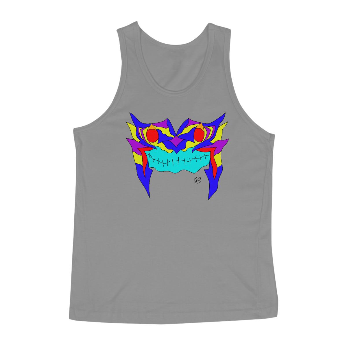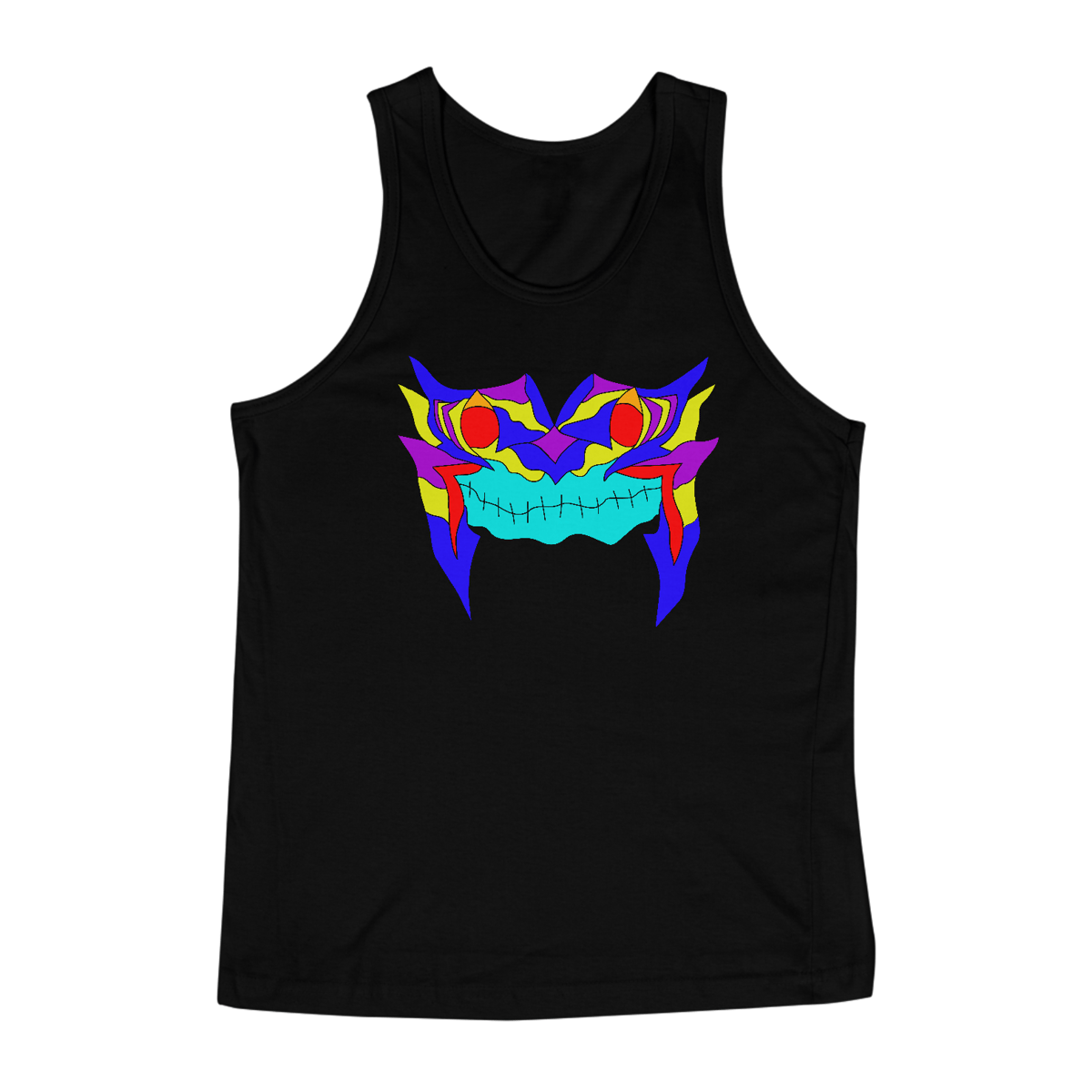 Um sorriso que não se explica, se sente. Esta máscara vibrante mistura psicodelia, força e mistério em um rosto que parece observar quem ousa encará-lo. As cores se entrelaçam como pensamentos intensos: azul elétrico que corta o silêncio, vermelho pulsante como sangue quente, amarelo vivo feito clarão de consciência. Prazer, Dark'in...